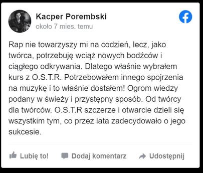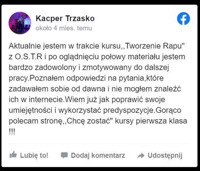 Opinie z Facebooka o szkoleniu "Tworzenie rapu"